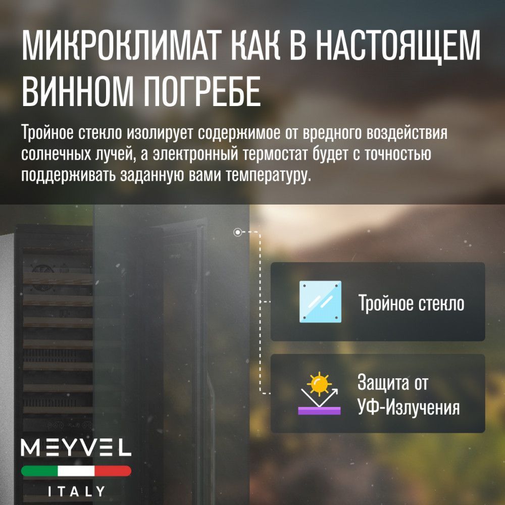 Модель MV83-KSB2 имеет привлекательный внешний вид, сочетающий в себе неподвластное времени очарование натуральных материалов с высокотехнологичными системами сохранения продуктов. Винный холодильник Meyvel MV83-KSB2 оснащен дверью с защитой от ультрафиолетовых лучей и отлично подойдет для хранения и созревания различных сортов вин. Динамическая система охлаждения обеспечивает оптимальную температуру для вина и сохраняет необходимую влажность внутри камеры.